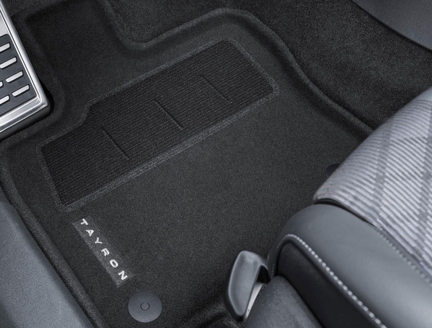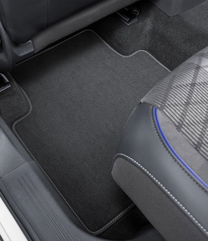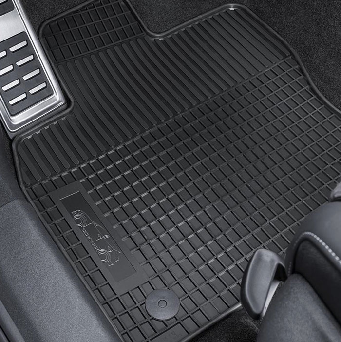 Rubber floor mats, front and 2nd row of seats, black, with lettering